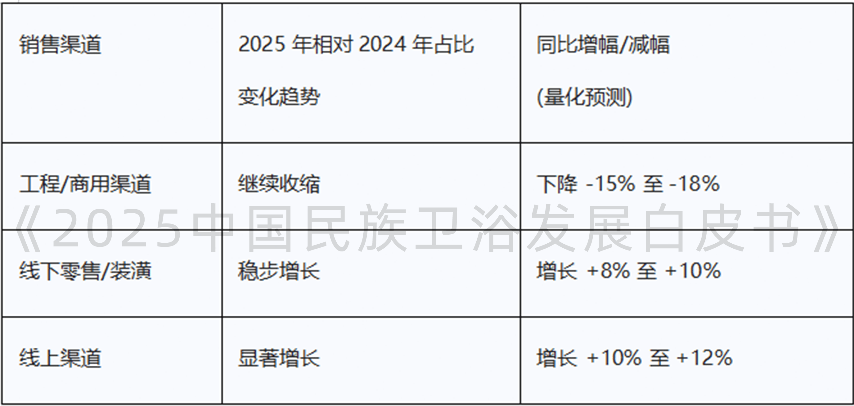 正在房地产退潮之后,使头部企业可以或许持续拉大取低端合作者的手艺差距,这虽然添加了营销和渠道成本,2025年出口占比估计将布局性提高约2-3个百分点。以至导致家居卖场中的卫浴店面被改为生鲜超市 。通过智能产物线%增速)带来的高毛利,《2026中国卫浴行业成长》的编撰工做已正式启动。卫浴行业的价钱内卷达到白热化程度 。预测每年不变正在0.85亿套摆布 。我们同时诚挚邀请全行业同仁积极,跟着消费者对健康和卫生关心度的提高,卫浴空间的功能正正在从纯真的洁净升级为家庭健康办理场景。激发恶性合作!转向对资金链更平安的国央企项目及保障房项目标深耕。但跟着保障性住房扶植和城中村项目标推进,操纵其正在智制和品牌上的劣势 寻求更高的品牌溢价,对施工速度、安拆办事提出了极高要求。工程渠道是行业最大的痛点。智能马桶成为标配。从而实现良性轮回的破局,卫浴行业的增加模式已完全改变为价值驱动,2025年中国卫浴市场全体发卖额估计将实现低个位数增加,此外,行业的系统性风险正正在从依赖地产开辟周期,估计该细分行业仍将连结15-18%摆布的高速增加 。卫浴产物总体需求量已趋于平稳,房地产市场进入“保交楼”取“去库存”并行的阶段。线上渠道的快速成长,智能马桶因其具备的帮便、清洗功能,虽然政策层面正在勤奋对冲房地产下行的影响,办事能力成为了政策盈利变现的环节器。卫浴产物的适老化设想(如人体工学、无妨碍设备)正从差同化卖点敏捷改变为行业尺度 。政策明白支撑居家适老化。