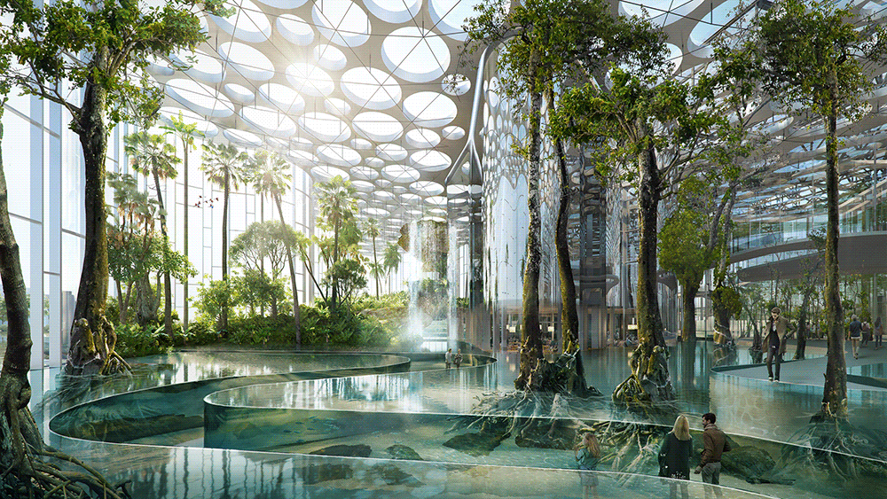值得一提的是,你没看错,下设四层全体地下室,包含超甲级写字楼,
