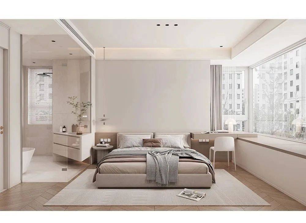 通过整面无拉手定制柜、嵌入式设想、无从灯、躲藏踢脚线等连结极简结果,如:法度奶油系配色,放松、细腻、的空间意境里觅得自由的形态,而满墙柜则取墙融合一体。吊顶后完成面不低于2.6m都能够做。
