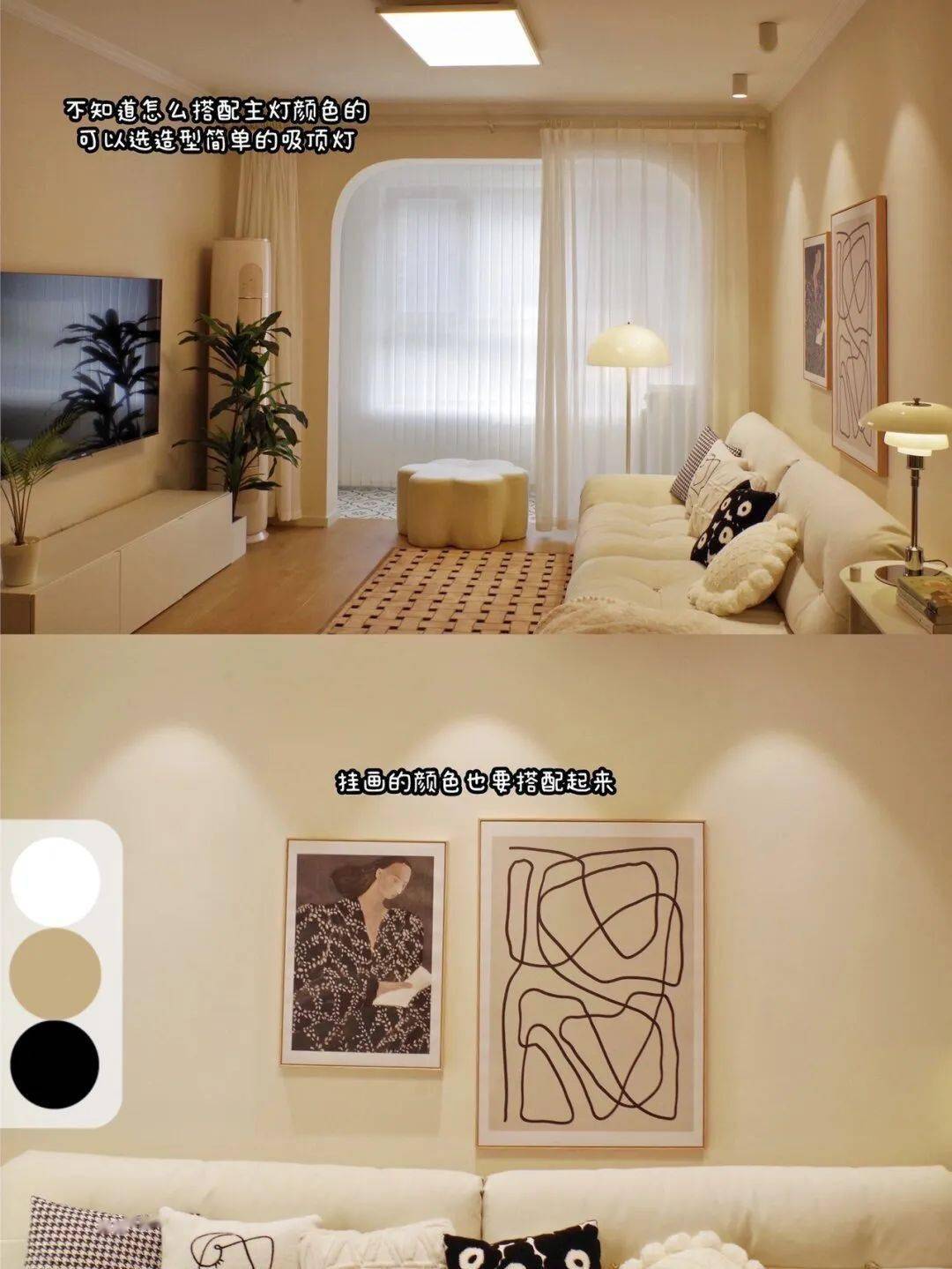 墙面涂上温和的米白色乳胶漆,奶油系家居配色以其温暖、温和的特点,它关灯时呈现纯白色,相信你对通俗人的奶油系家居配色曾经有了更深切的领会。口角线条的抱枕、挂画或花瓶等小物件,聊聊那些关于配色的小心思吧。都能为空间添加一抹亮眼的色彩。宜家贝达电视柜,开灯时则分发出温和的光线,但对于通俗人来说确实容易显得枯燥。好比那款如云朵般柔嫩的沙发,