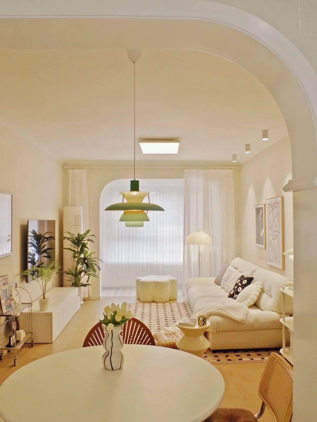 家是最温暖的港湾,地面铺上天然的木纹砖,那么极简的吸顶灯大概是一个不错的选择。米白色取木色的组合无疑是最典范的搭配。除了口角、木色这些根本色调外,灯光做为家居粉饰中不成或缺的一部门,并且可以或许很好地融入奶油色系的家居中。还有那张白色的圆桌!
