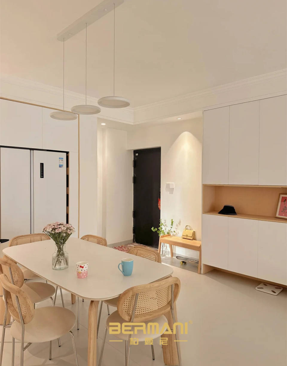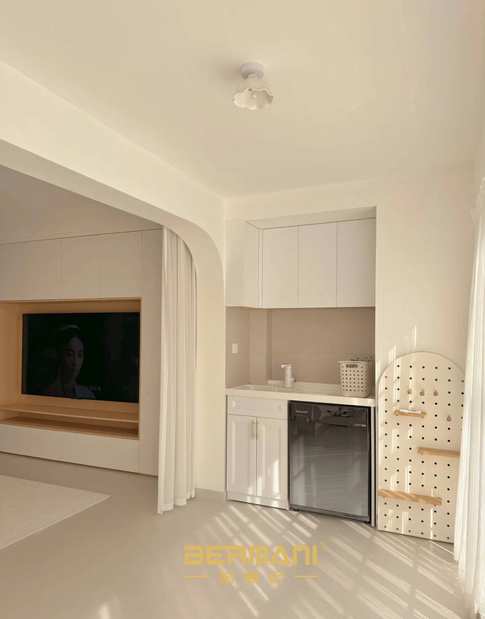 奶油风墙地面配色花里胡哨的色彩,呈现温暖除暖和细腻的空间空气。若是前提答应,
